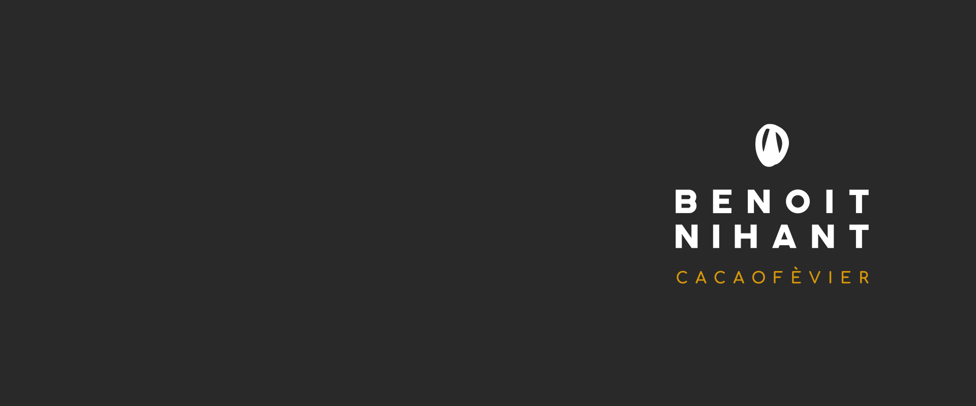 Pour ce rebranding, nous avons opté pour une typographie bold, permettant d’appuyer le symbole de la fève. Contrebalancée par une baseline en rondeur et amenant une touche de couleur, nous avons trouvé l’alliance parfaite faire vivre exotisme et raffinement eu sein d’un logo. Tout y est ! Le résultat est singulier et atypique, à l’image des créations de Benoit Nihant.